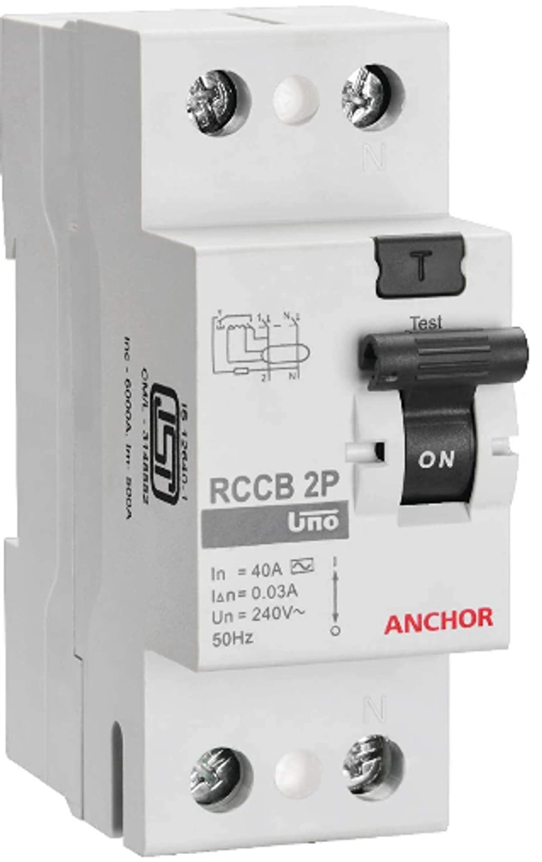 Anchor by Panasonic 98211 Uno Series 40 Ampere Dual Pole 100Ma RCCB, (White, PVC Plastic)