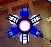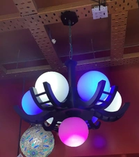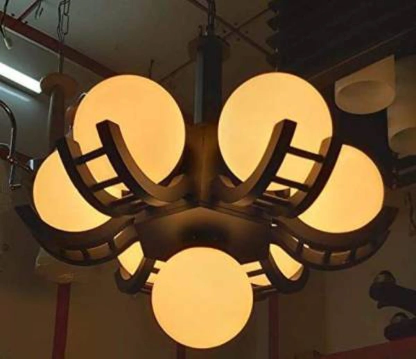 Globe Shaped 6+1 Light Contemporary Wood and Glass Chandelier Jhoomer for Ceiling