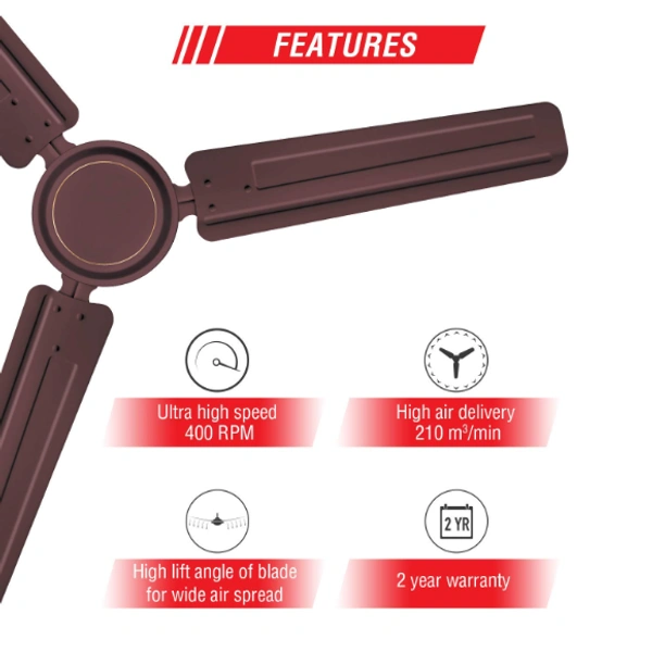 USHA Racer 1200MM BROWN 1200 mm 3 Blade Ceiling Fan (Rich Ivory)