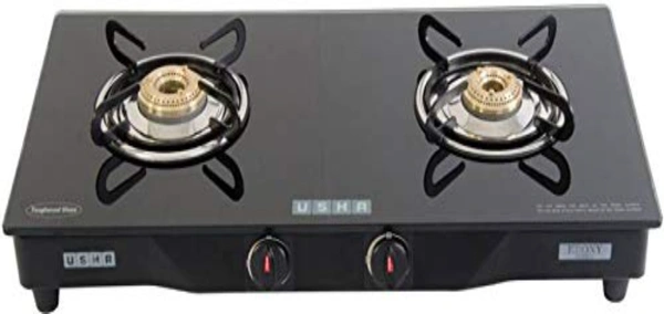 Usha Gas Stove Ebony GS2 001 Premium Quality 2 Burner Shatterproof Gas Stove (Black)